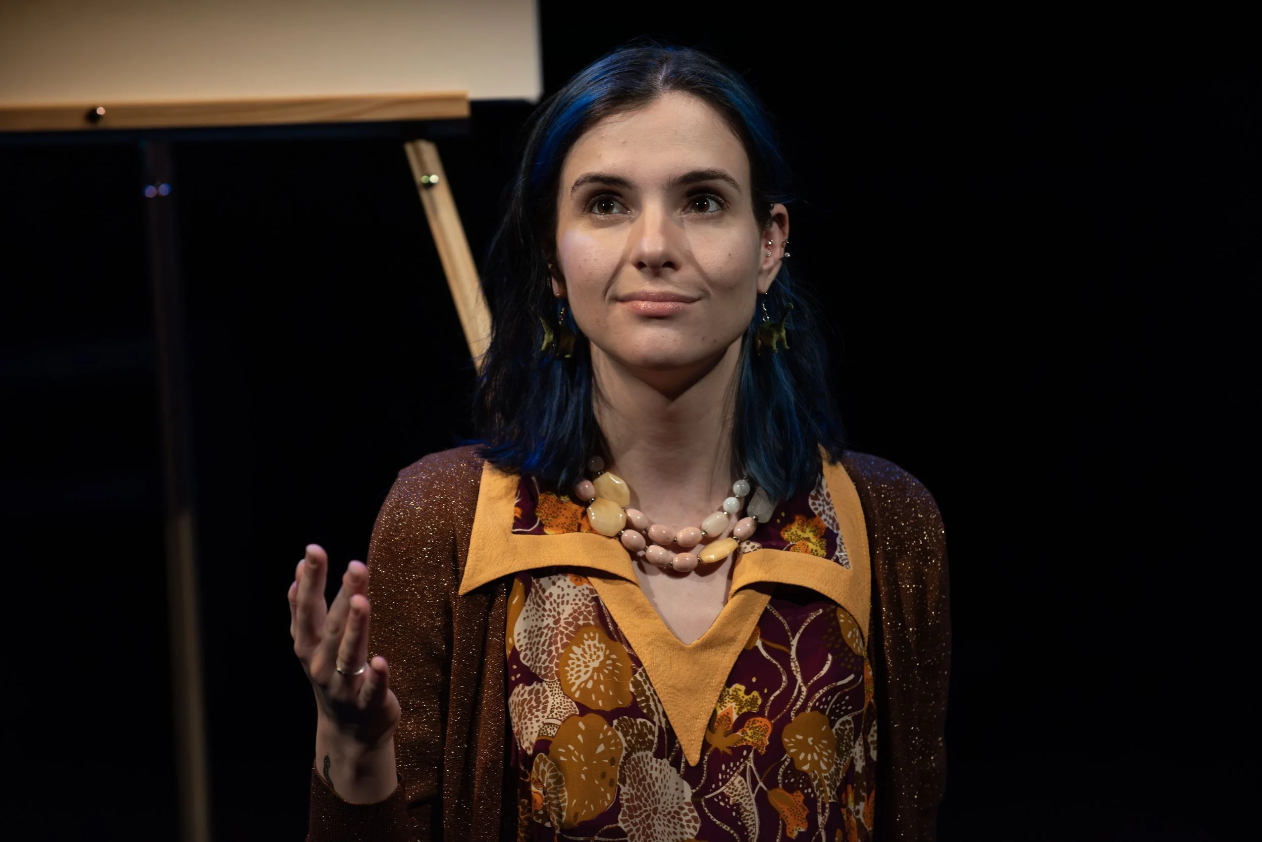 Vi Roselli Approaching her art with an empathetic edge, a healthy pinch of “super gay,” and bright blue hair LATEST WORK “Middletown” at Atlantic Acting School, directed by Jake Beckhard Gallery